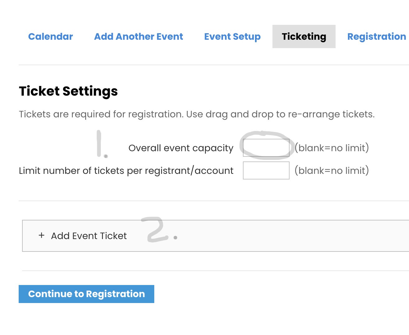 1)Enter the number that can attend in “Overall event capacity”