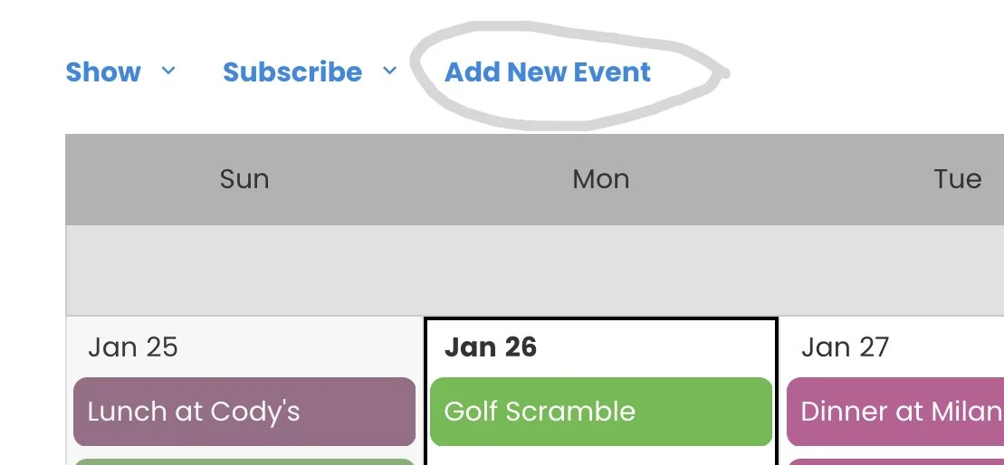 At the left top of calendar, click “Add New Event”